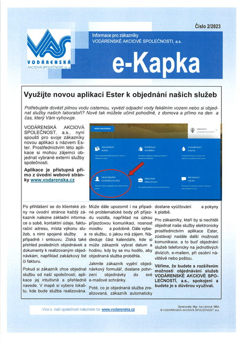 Využijte novou aplikaci Ester - vodárenská akciová společnost